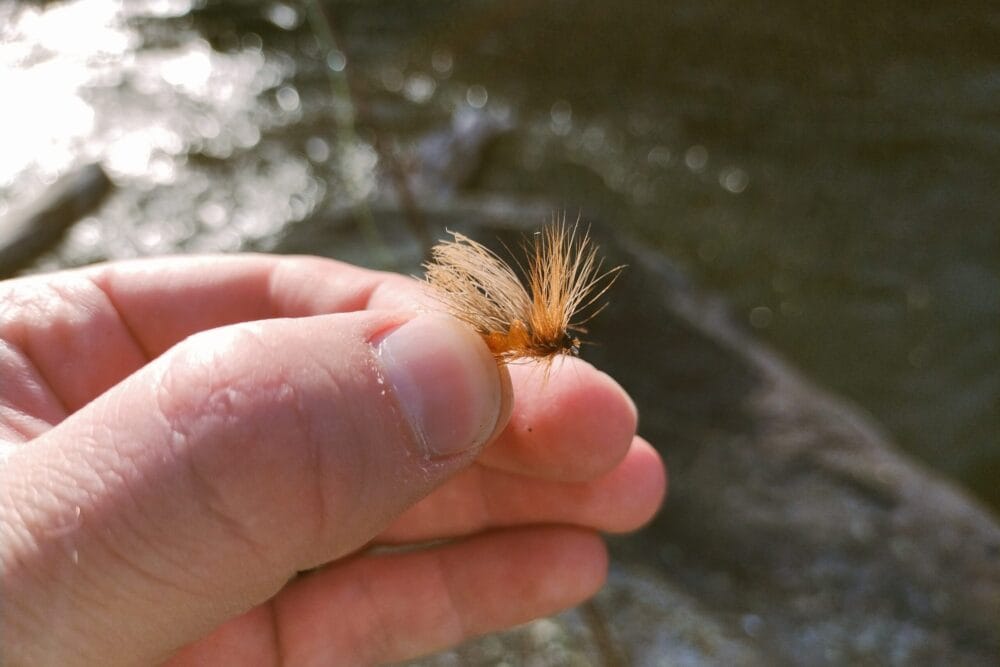 The sun is finally starting to drop below the pine trees and canyon wall on the west side of the river. I see small nondescript bugs flying near the water surface. Dry time. I pull an October caddis out of my fly box and tie it to the end of my tippet.