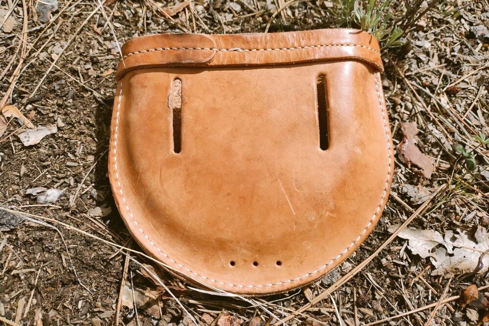 - Pouch: Hand-tooled leather with 2-inch belt slots.