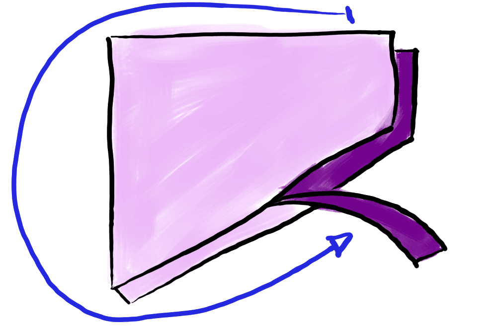 Begin to secure the middle panel to the body panels 2 inches from the headtube portion and work your way back along the top tube portion towards the seat tube portion. Ensure that you secure the panels together to form an inside-out bag. You will notice that there is an overlap between the ends of the middle panel once it comes all the way around the bag. This creates a storm flap opening to run wires or hoses through the bag once it is complete.
