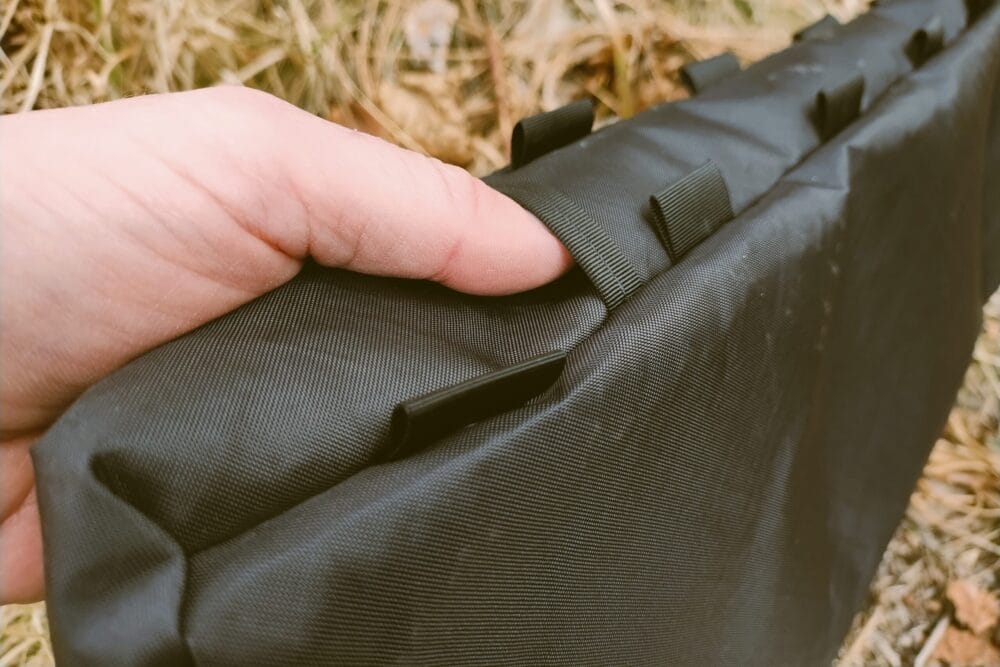 - You can sew a daisy chain with 1-inch webbing inside the bag along the top tube to create a platform to strap a small hand pump.