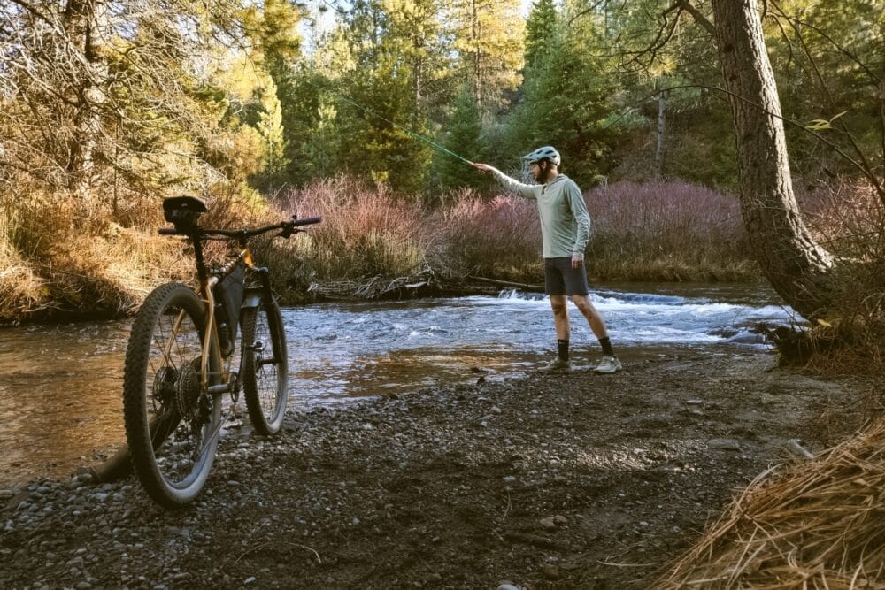 I found that the Ritchey Ultra works best for bikefishing adventures that prioritize biking over fishing. The more aggressive, trail-focused cockpit setup works well when I’m riding higher elevation singletrack, and I want to extend my snack breaks with a few casts in nearby creeks. I can soak up miles on forest roads en route to farther fishing destinations with the XC-oriented configuration.
